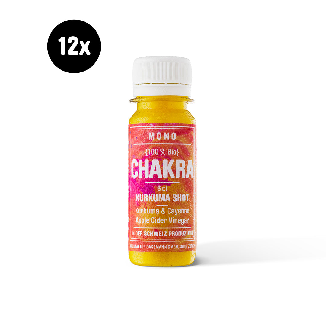 Unser Kurkuma-Shot „CHAKRA“ – übersetzt der Kreis, steht in der vedischen Philosophie für die sieben Energiezentren im menschlichen Körper, welche entlang der Wirbelsäule verlaufen. Die Rezeptur des CHAKRA Kurkuma Shot ist inspiriert von den jahrtausendalten Lebensweisheiten und Traditionen der Yogis. Schon damals waren sie überzeugt, dass ein physisches sowie psychisches Wohlbefinden nur durch den Einklang von Körper, Geist und Seele zu erreichen ist. MONOs Antwort ist der Kurkuma Shot namens CHAKRA.